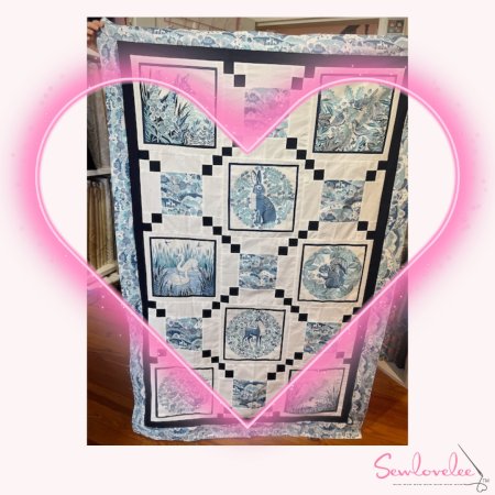 Pictured above is Ally’s quilt made with the Foxwood panel and her favorite fabrics.