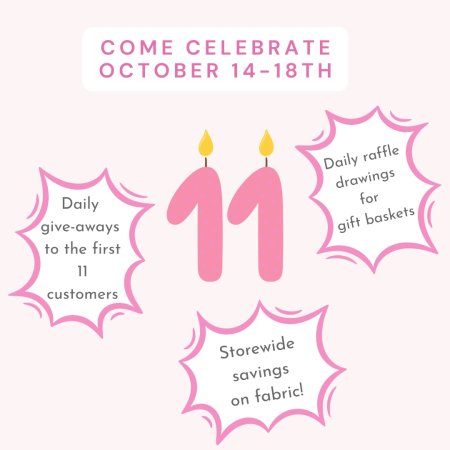 Celebrate from October 14th through October 18th at Sewlovelee’s 11th anniversary event where you will find: