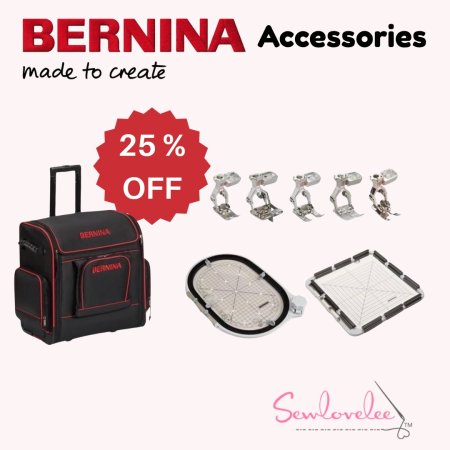 Don’t forget about 25% OFF Bernina Accessories like hoops, presser feet and books.