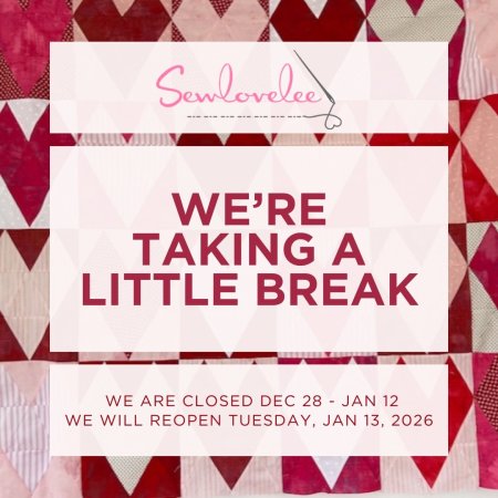 Following our End of Year Inventory Reduction sale, Sewlovelee will be closed for Winter Break from Sunday, December 28th through Monday, January 12th.