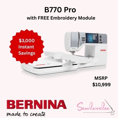 During the month of March, receive the ultimate upgrade and get a Bernina B770 Pro with a FREE embroidery module for just $7999! That’s over $3,000 instant savings!