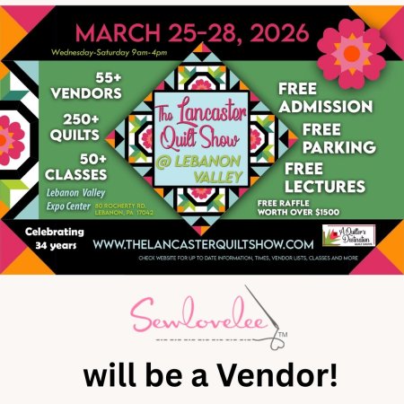 Join us from March 25th-28th at the Lancaster Lebanon Quilt Show in Lebanon, PA. This is a fabulous FREE show and Sewlovelee will be a vendor. Get more information about this show here.