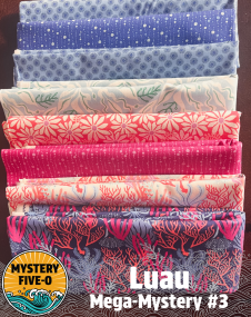Both settings for Luau differ in size (Luau Torches 65”x83” and Luau Feast 75”x75”) and feature the same SEVEN beautiful fabrics. Our carefully curated kits reveal ALL of the fabrics we’ve chosen for Luau – no mystery here – you get EXACTLY what you see. OR, if you want to dig into your stash, we will share a video (late February) in our Facebook Group that will help guide you with your fabric choices.